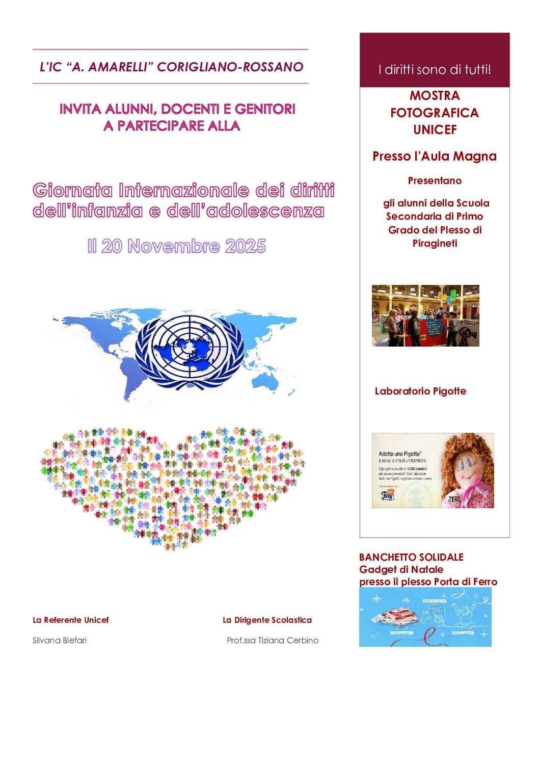 l'I.C. Amarelli invita gli alunni, i docenti e i genitori a partecipare il 20 Novembre alla Giornata Internazionale dei diritti dell'infanzia e dell'adolescenza
